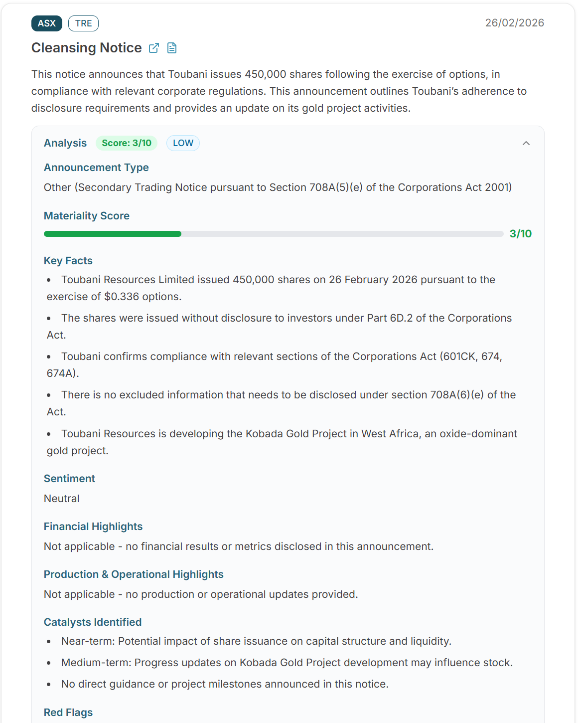 Real-time ASX announcements delivered in a structured, prioritised feed.