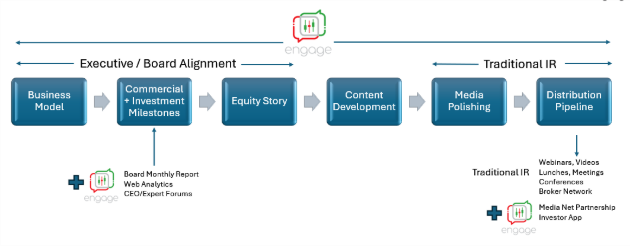 Engage Strategic is our core service - from defining business models/milestones, crafting equity stories to delivering content and analytics through our Investor App, we help companies tell compelling stories, attract capital, and build lasting investor confidence.